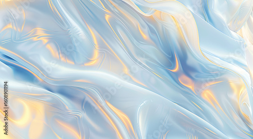 Eleganckie tło z płynnego, perłowego jedwabiu. Luksusowa, abstrakcyjna tekstura z niebieskimi i złotymi refleksami.