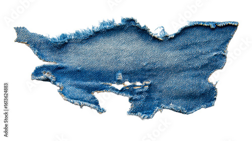 Denim fabric with frayed edges on a transparent background