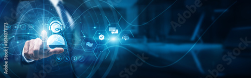 Service executive hand touch interface customer service system, inquiries assistance interaction support channels satisfaction feedback automation experience improvement resolution.