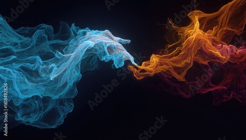 Abstract digital artwork of two swirling, flowing, ethereal clouds of contrasting colors