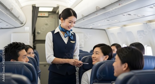 Flight Attendant Assisting Passengers: In-Flight Service and Air Travel