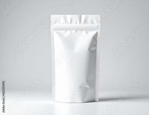 白い無地のパッケージ袋のモックアップサンプル デザイン 新商品開発 グレー背景