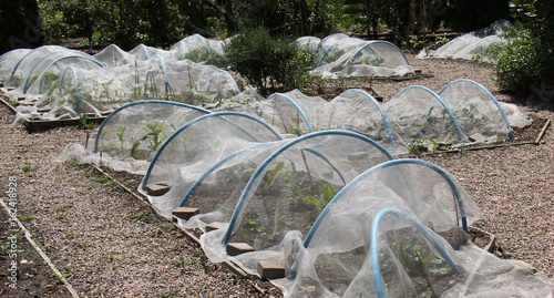 Plastic Hoops and Fleece to Protect Garden Vegetables.