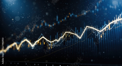 Dynamic financial market growth chart illustrating upward trends and volatility in a digital abstract setting