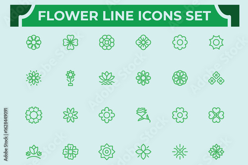 Flower and plant line icons set. Garden, rose ,flower, daisy, sunflower, plant,lotus, linear, flowerpot, spa.Editable stroke. Vector illustration