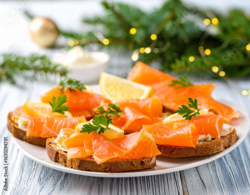 toasts au saumon fumé sur une table de fête