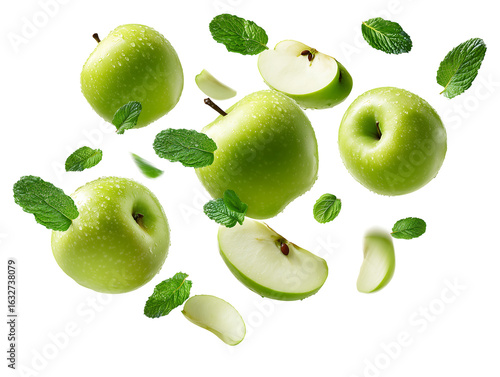 Juicy Green Apples & Mint Leaves Fresh, Healthy Food Photography