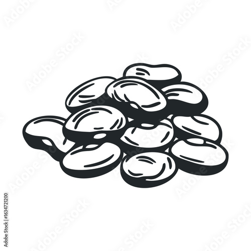 Hand-drawn coffee beans illustration on white background