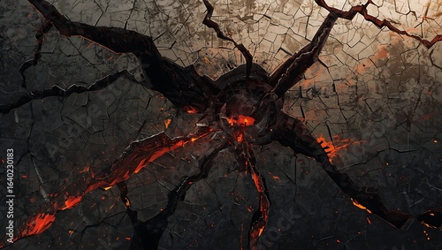 Abstract artwork inspired by an earthquake, with fractured surfaces, cracked earth patterns, seismic wave textures, and chaotic energy.