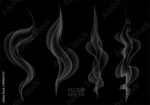 White smoke set collection on black vector illustration.