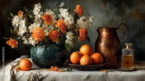 Citrus �� sinensis & Mangifera indica Arrangement with Cupric Oxide Thin-Film Interference on Barium Sulfate Backdrop