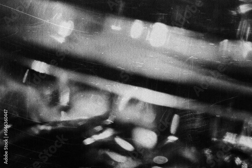 Old film texture with scratches, noise and glitch shapes. Realistic overlay film texture in black-white, dust and grain. Distressed retro movie or photo negative effect of cinema nostalgia.
