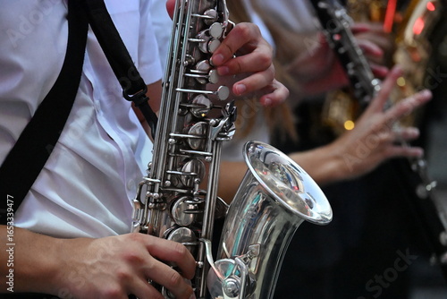 ludzie grający na różnych instrumentach bębny puzon nuty