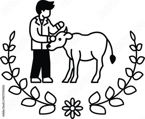 A man is petting a cow