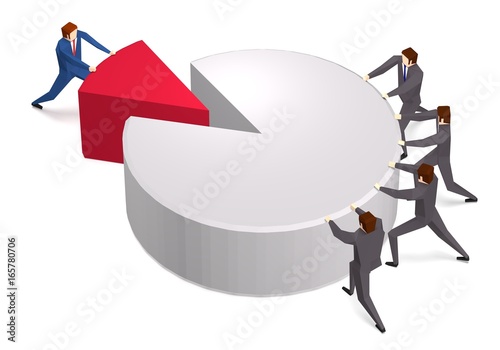 Business people pushing peace of pie chart