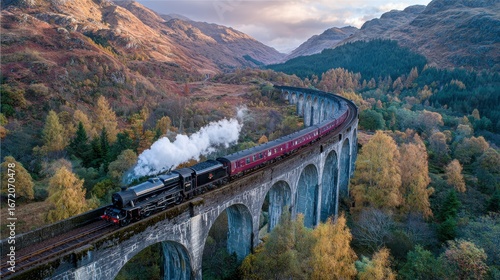 Steam Train on Glenfinnan Viaduct Autumn Scenery