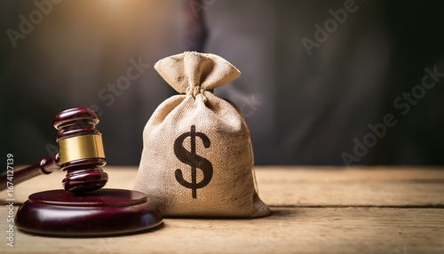 money bag beside judgers gavel representing legal financial penalties for criminal or traffic violations