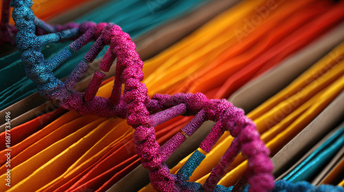 Vibrant DNA structure intertwines with colorful files, showcasing unique database system for genetic information and research