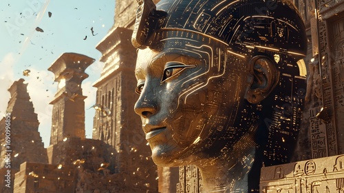 A surreal portrait of an ancient pharaoh, its intricate features meticulously crafted to embody the spirit of history, emerging with majestic detail.
