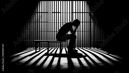 Despair Behind Bars: A Silhouette of Isolation and Loss in Confinement