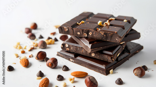 Tabliczki ciemnej czekolady z orzechami, smakowity deser