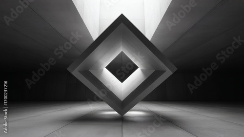 A geometric sculpture, likely intended for architectural illustration. The square frame has a hollow center with light from above. The photo has been submitted to stock photography site.