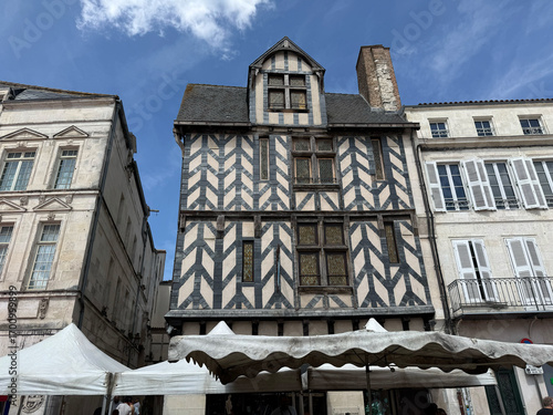 Historische Fassaden in der Altstadt von La Rochelle, Frankreich