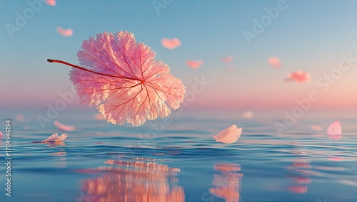Floating Blossom Petals Over Water
