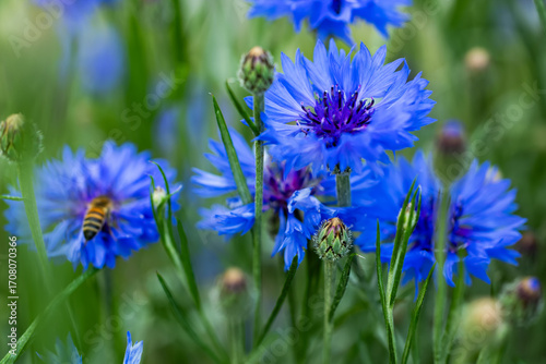 Centaurea cyanus colorful flowers in a n ornamental garden