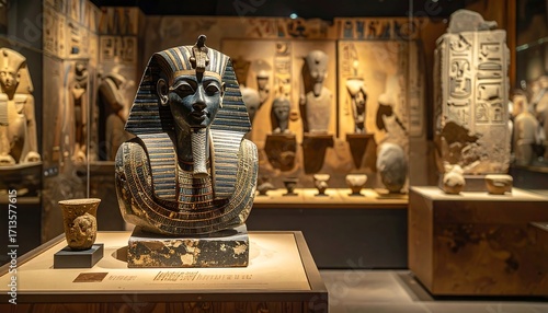 An inside view of a museum with an ancient artifact, showcasing art, artifacts, and relics from a historical civilization