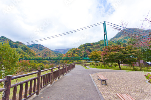 Momijidani Suspension Bridge in Shiobara onsen, Tochigi prefecture, Kanto, Japan.