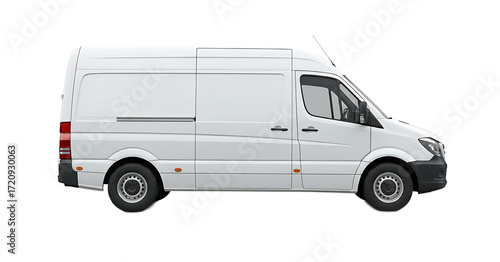 White Cargo Delivery Van Side View Isolated on Transparent Background