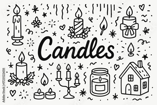 Candle silhouette icon set. christmas, holiday, celebration outline designs