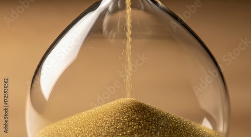 Hourglass elegantly showing the passage of time with golden sand meticulously measured to