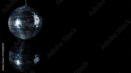 disco. Shiny disco ball reflecting sparkling lights against a dark backdrop, creating a festive atmosphere. lifestyle magazines.