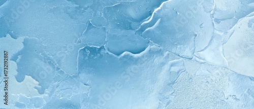 Ice block texture with frosty surface on blue background, cold and wintery. Suitable for backgrounds, prints, and seasonal content.