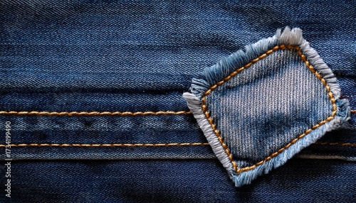 a frayed denim patch with a raw edge and visible stitching perfect for textile design or fashion projects