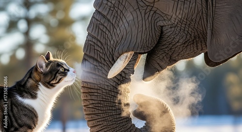 An unlikely friendship between a cat and an elephant.