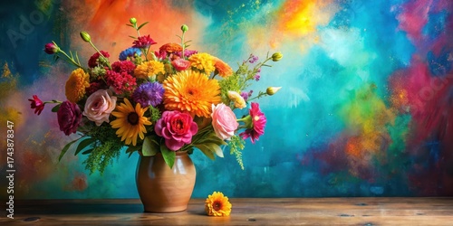 Colorful floral arrangement with bold brushstrokes and vibrant hues against a gradient background, home decor inspiration, bohemian decor