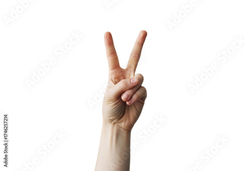 Isolated human hand showing the peace sign, symbol of victory, fingers up, gesturing