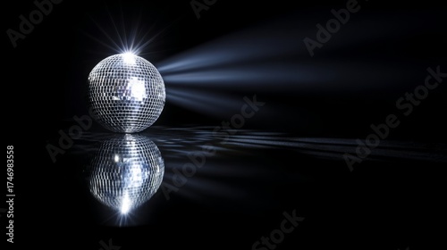 disco,spotlight,mirror,sphere,ball,glitter,dark,isolated,decoration,shiny,glass,sparkling,light,metal,party,dramatic,reflection,round.