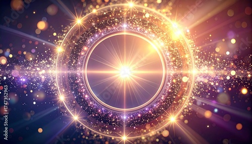 キラキラした円形の綺麗な光線の背景