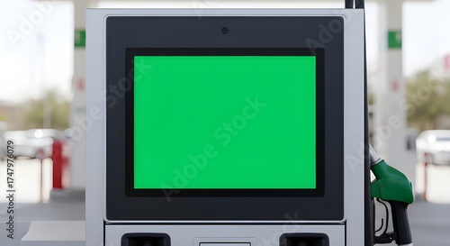 modern gas pump with green screen display