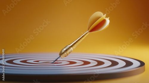 Golden Dart Hitting the Center of a Target in a Minimalist Style, Symbolizing Precision, Focus, and Success in Achieving Goals and Objectives with Vibrant Background