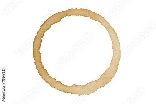 Coffee spill stain forming a brown ring, creating a textured mark on transparent background