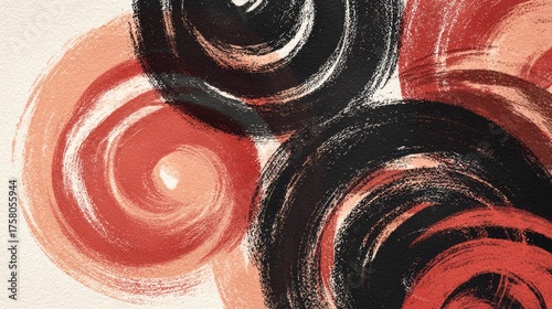 an abstract art piece featuring swirling patterns in a blend of red and black hues, possibly suggesting movement or energy. it is likely intended for advertising or decorative purposes