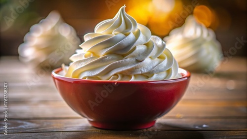 Delicious Creamy Whipped Topping in Bowl - Stock Photo