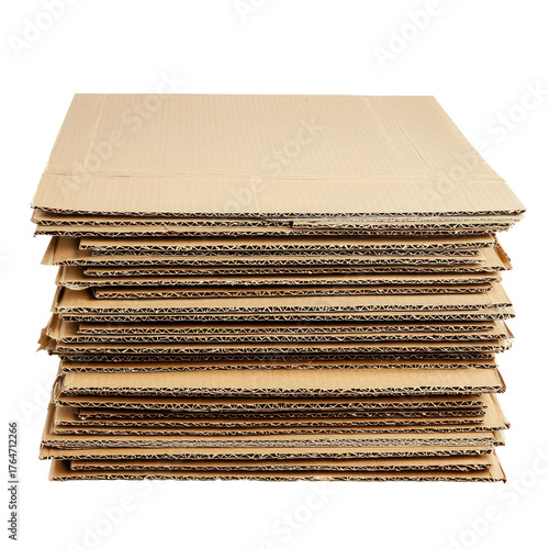 A stack of flattened cardboard boxes, waiting to be assembled. full length isolate on transparent background