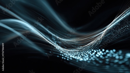 Dynamic waves of light abstract visual digital art dark background close-up perspective energy flow concept