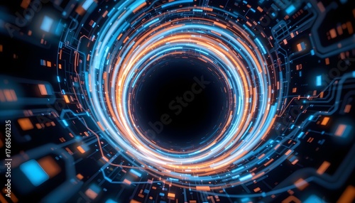 Dynamic Abstract Technology Background with Swirling Blue and Orange Light Effects